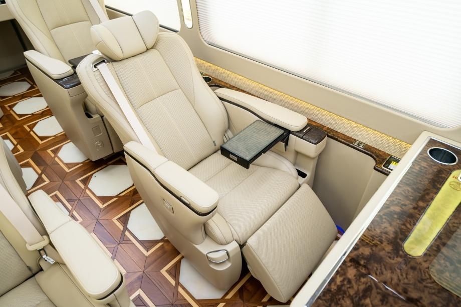 中排 2 张、后排 2 张原装埃尔法航空座椅,是全车舒适中心。每张座椅均支撑 16 向电动调理,含通风、加热及 10 种按摩形式(腰背揉捏、腿部拉伸、臀部轰动等),座垫填充高密度回忆棉,长度达 53cm,完全支撑腿部,远程乘坐疲劳感下降 70%。